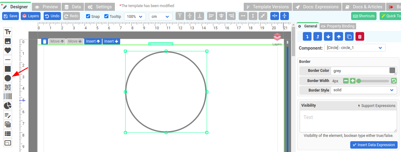 The Circle component allows users to add circular shapes to their reports, enhancing the visual appeal and providing a clear representation of data or design elements.