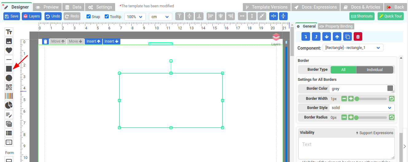 Additionally, the Rectangle component offers the flexibility to select both a fill color and a border color for your shape. This means that you can choose the desired color to fill the interior of the rectangle, giving it a solid or gradient appearance. Furthermore, you can specify a border color to outline the edges of the rectangle, allowing for clear visual separation from the surrounding elements.