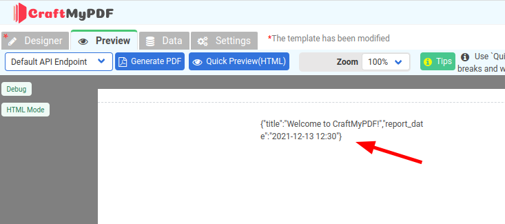 If you are unsure about the actual JSON you are receiving during testing or debugging, you can use JSON.stringify to display the JSON data in your PDF using a text component as follows: