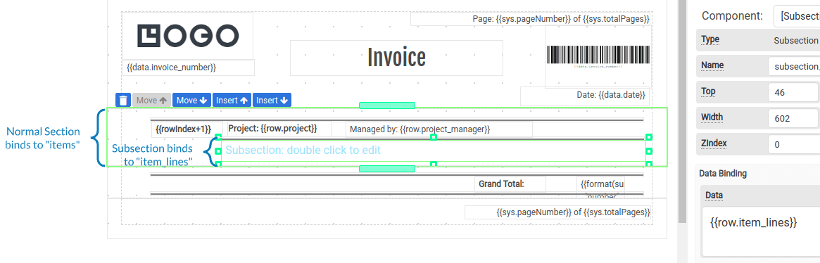 The following is a subsection within a data-bound normal section. Double click on the subsection you will enter into the subsection mode which you can edit the subsection.